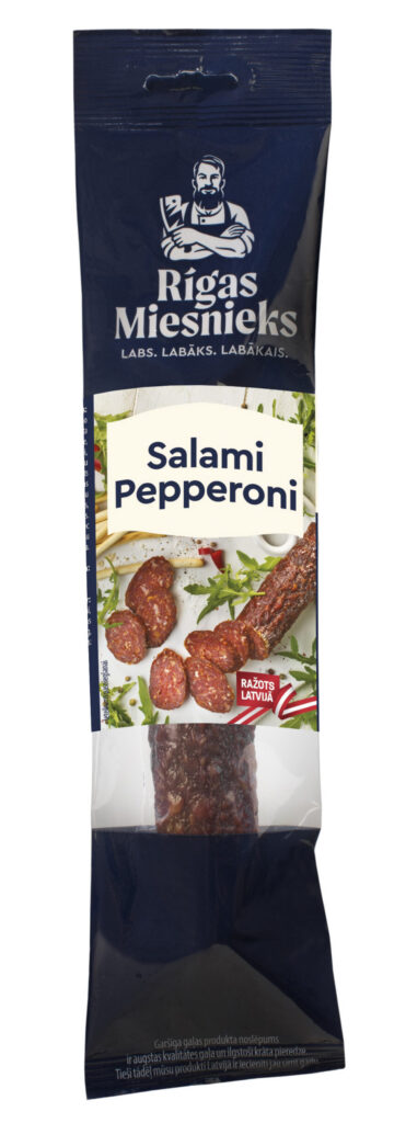 cūkgaļa (100g produkta pagatavoti no 125g gaļas), liellopu gaļa (100g produkta pagatavoti no 24g gaļas), sāls, dekstroze, garšvielas, garšvielu ekstrakti, antioksidanti: E300, E316; cūku hemoglobīns, krāsviela E120, konservants E250, starta tīrkultūras. Neēdams apvalks.